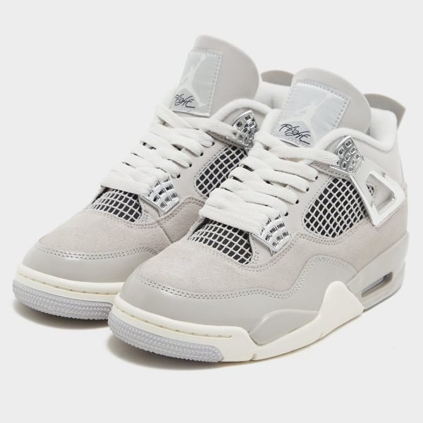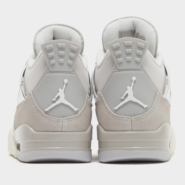 In terms of its design, the “Frozen Moments” shines MJ’s fourth signature through a relatively understated lens. “Light Iron Ore” and “Neutral Grey” are used predominantly throughout the upper, dressing the leather and suede layered underneath the “Metallic Silver” support wings. “Sail” midsoles and complementary accents, then, help to round out the package alongside white Jumpman logos and seldom hits of black.