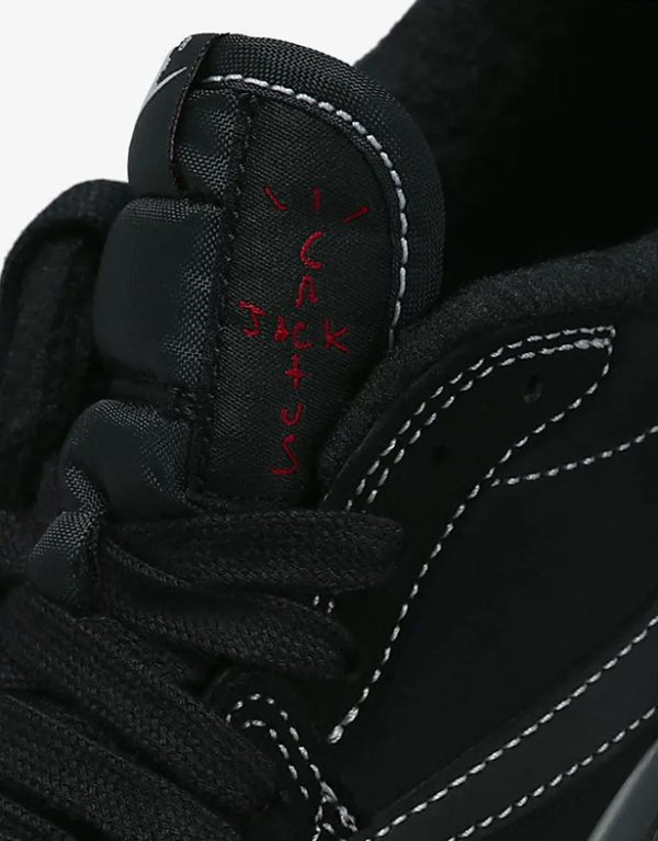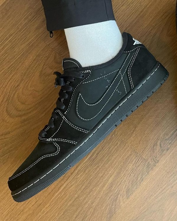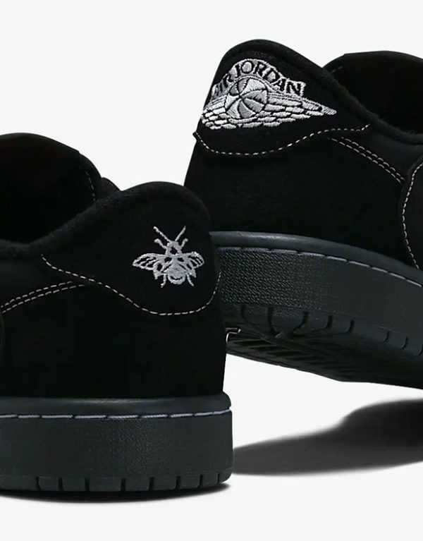 Jordan Brand and Scott have outfitted the Air Jordan 1 Low in an all-black colorway that is accented by white contrast stitching and embroidery throughout the upper. A subtle hint of red can be found on the lateral portion of the tongue with the Cactus Jack logo embroidered. The left shoe’s heel features an embroidered bee for his daughter Stormi while the right carries the typical Wings logo. Additional detailing includes a custom box and sockliner which carry various Jordan Brand, Travis Scott and Cactus Jack branding elements. Lastly, the shoe will come with black laces and alternate options of red and white with a black pattern.